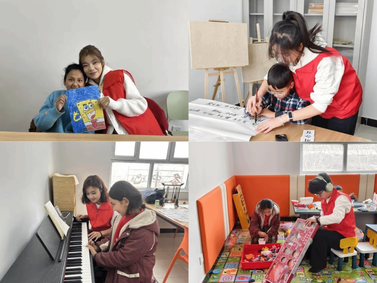 活动现场,志愿者们根据孩子们的学习需求,精心规划了丰富多样的课程内容。除了基础的课业辅导,帮助孩子们梳理知识点、解答学习难题外,还延续了第一期广受好评的特色兴趣课堂。在毛笔字书写课堂上,志愿者从选纸、蘸墨教起,耐心纠正孩子们的执笔姿势,看着一个个稚嫩却工整的汉字在纸上慢慢成型,孩子们的脸上满是成就感;阅读室里,孩子们围坐在一起,共读绘本故事,在交流中拓宽视野;艺术积木区更是充满欢声笑语,孩子们发挥想象力,拼搭出各种创意造型;象棋角里,孩子们两两结对对弈,在志愿者的指导下学习棋子走法、琢磨对战思路,在趣味对弈中锻炼逻辑思维;而备受欢迎的钢琴教学,由每期固定参与的志愿者负责,灵动的音符从指尖流淌,点亮了孩子们的音乐梦想。