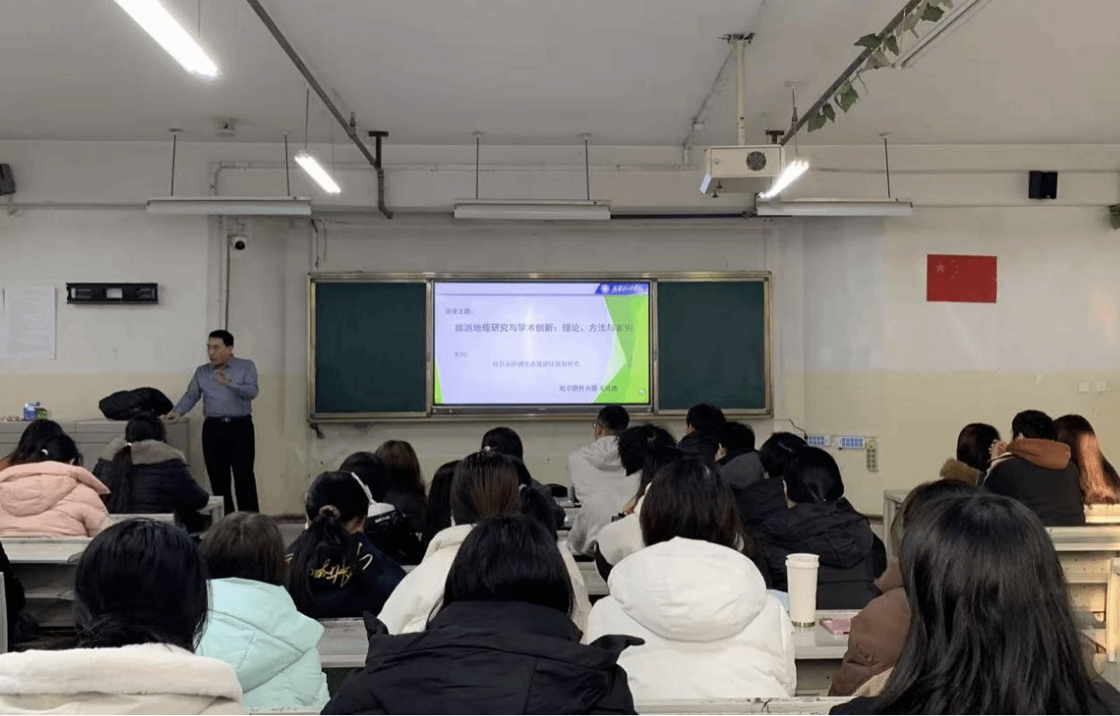 为促进学科交叉融合,拓宽学生学术视野,提升科研素养与实践能力,12月26日,管理(资源环境)学院在北校区综合教学楼308教室举办“旅游地理研究与学术创新:理论、方法与案例”跨学科学术讲座。本次讲座由吐逊托合提·买吐逊教授主讲,主要面向旅游管理专业(专科)、地理科学专业(本科)学生,讲座还吸引了其他相关专业师生积极参与。