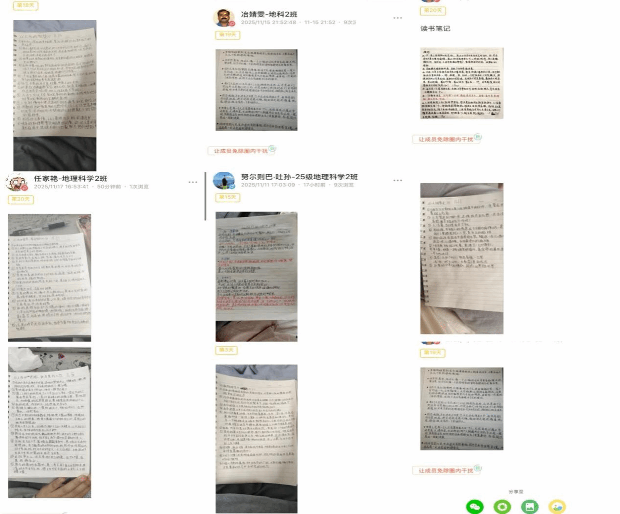 通过持续的打卡实践,同学们不仅夯实了外语基础、优化了知识整理能力、提升了语言表达水平,更在内容分享与交流互动中深化了对高效学习方法的理解。活动逐步形成了“主动向学、互助共进”的优良氛围,为管理(资源环境)学院学风建设注入了持久活力。