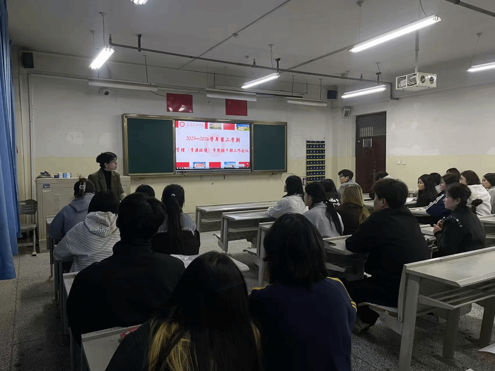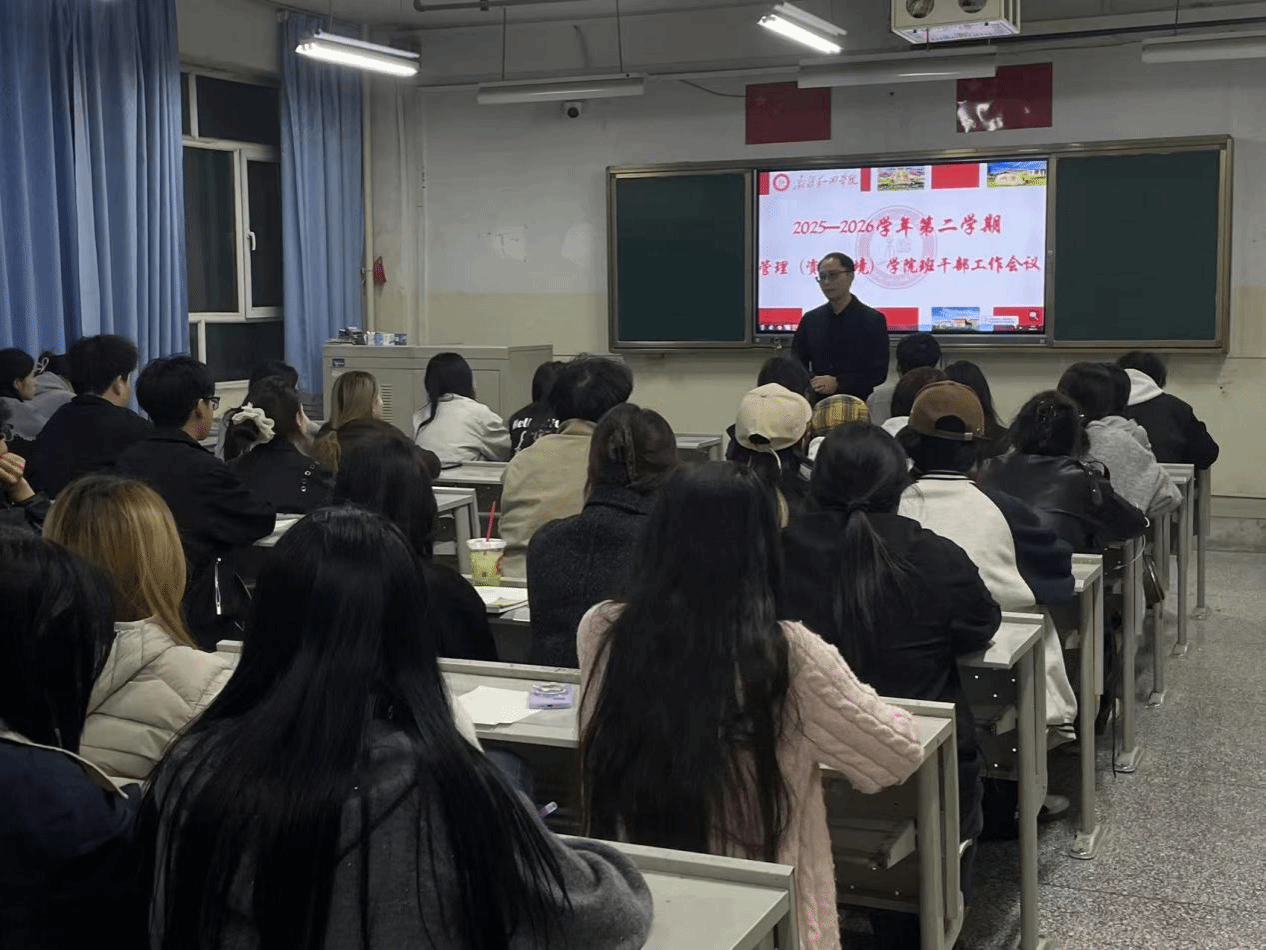 为明确新学期学生工作方向,强化班干部责任意识,3月5日,管理(资源环境)学院召开2025-2026学年第二学期班干部工作会议。管理(资源环境)学院党总支副书记、院长艾力·司马义、党总支副书记魏波、学工办副主任阿迪拉·阿不来提及全体班委成员参加会议。