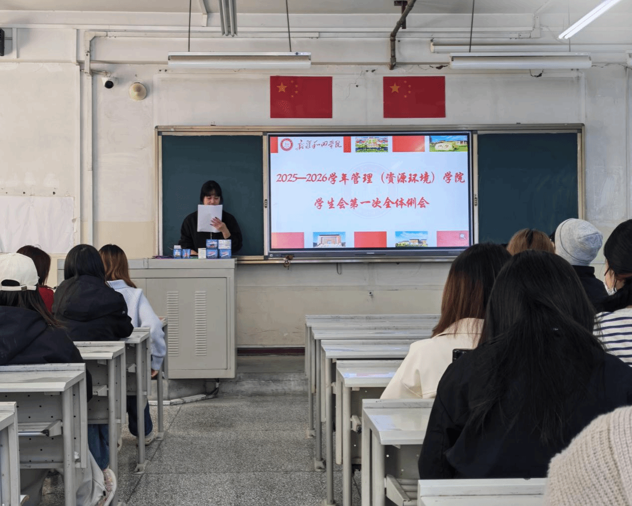 春回大地,万象更新。3月9日,管理(资源环境)学院学生会新学期第一次全体例会北校区召开。学院学生会指导老师阿迪拉·阿不来提及全体成员参会,会议学生会由主席团成员常悦主持。