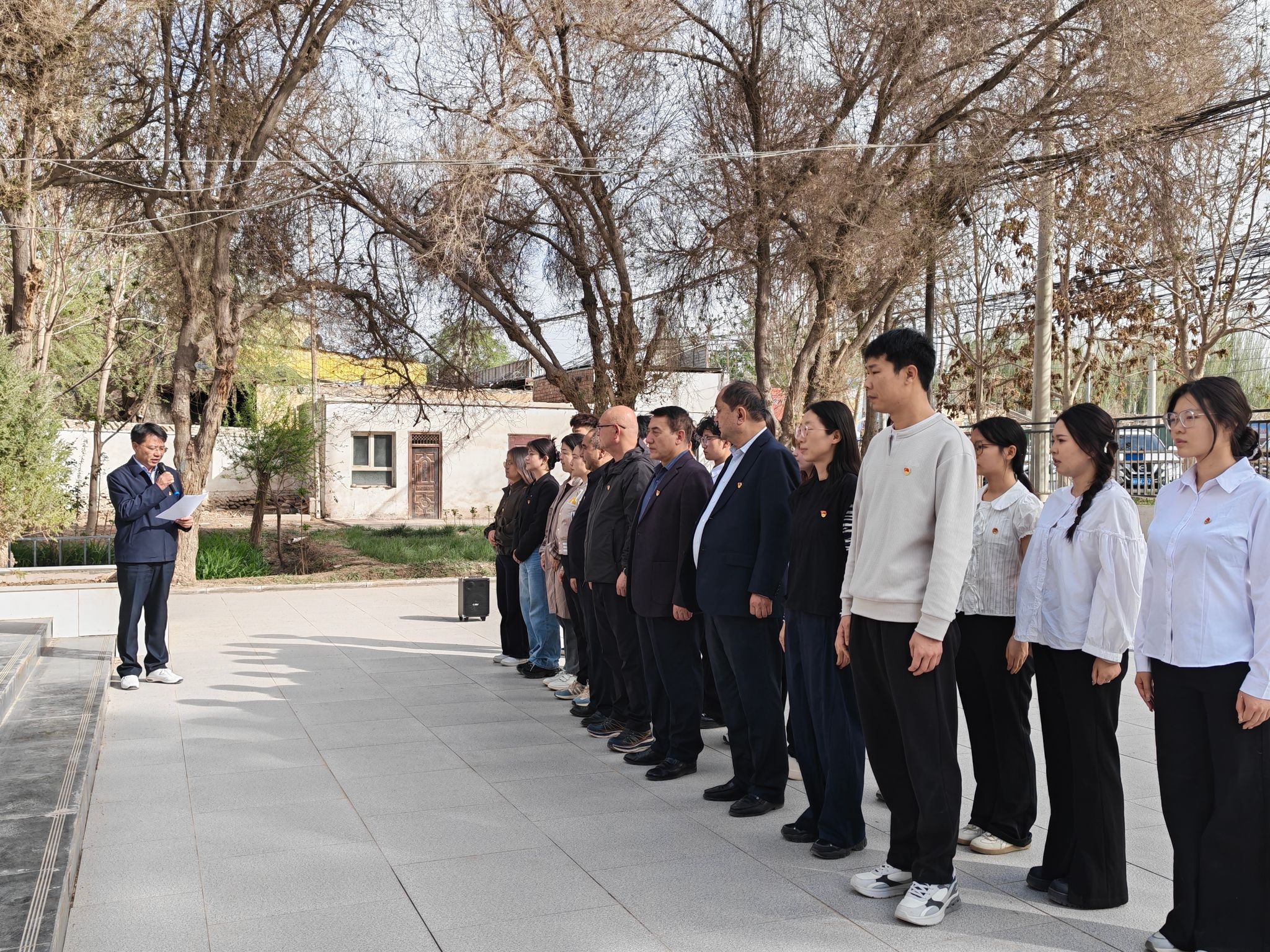 随后,全体人员低头肃立,集体默哀,在静默中追思先烈们为国家建设、人民幸福抛洒热血、无私奉献的崇高精神,感念今日幸福生活的来之不易。默哀结束后,全体人员面向纪念碑深深鞠躬,以最诚挚的礼仪向英勇献身的先烈们致以最深切的悼念。