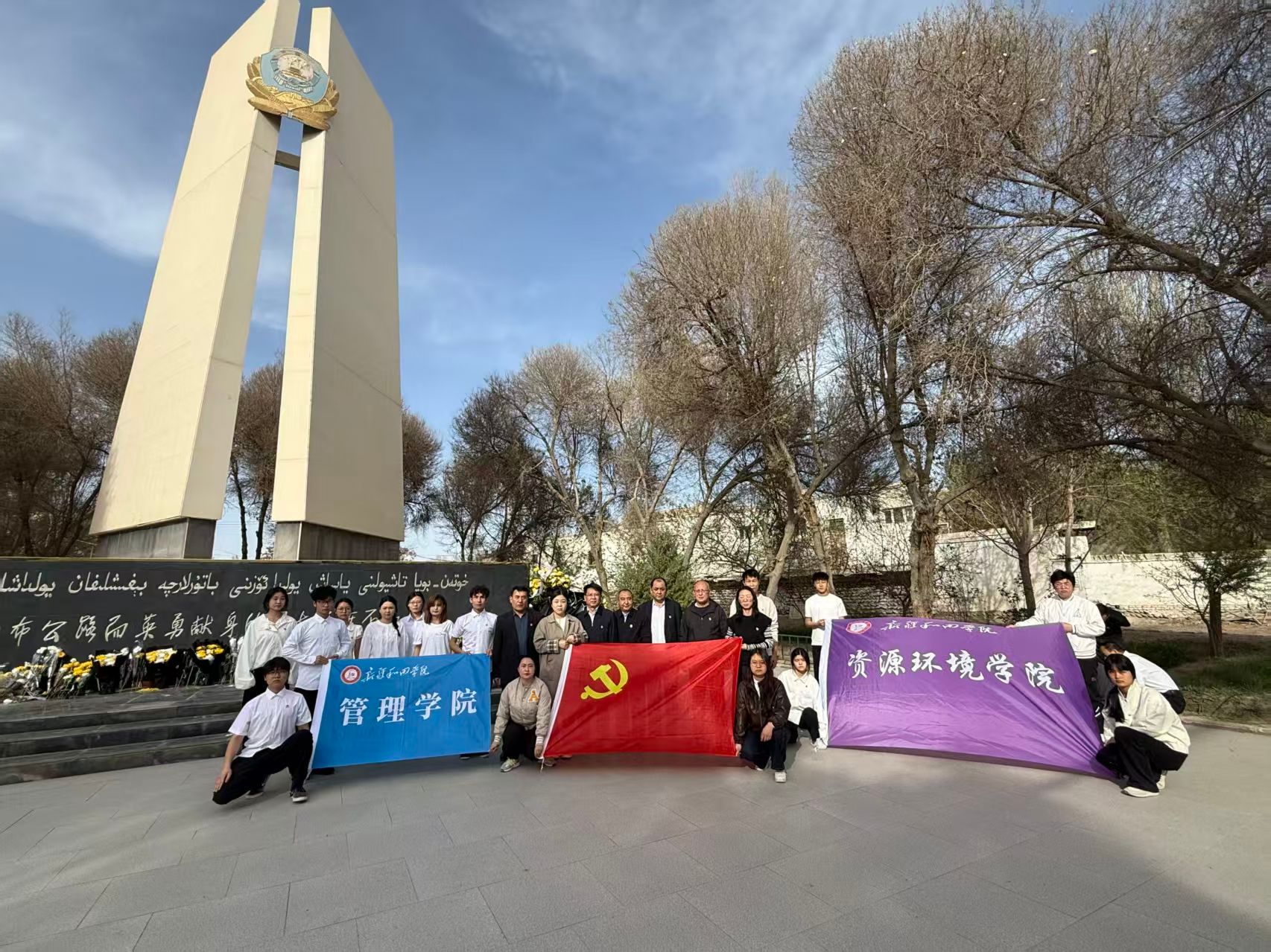为赓续红色血脉、筑牢初心使命,4月2日下午,管理学院党总支组织师生党员代表及入党积极分子共23人,来到为修筑和布公路而英勇献身的烈士纪念碑前,开展“追思先烈守初心”清明祭扫党日活动,以党团一体化沉浸式教育引导师生传承红色基因、汲取奋进力量。本次活动由学院党总支书记郭广星主持。