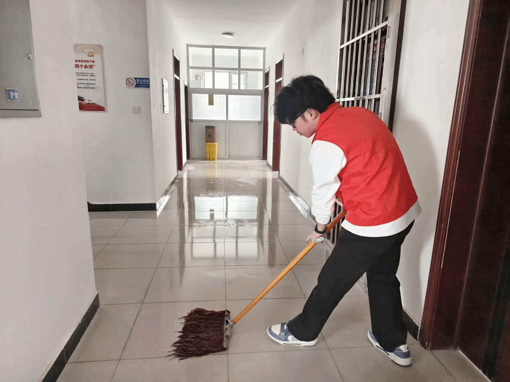 普法宣传温情开展的同时,留守老人帮扶行动同步推进。志愿者们主动对接社区留守老人家庭,携带清洁工具上门,为老人们打扫房间卫生、清理杂物垃圾,细致整理老人的居住环境,不放过任何一个卫生死角。过程中,志愿者们还与老人们亲切交谈,倾听老人心声、询问生活需求,叮嘱老人们注意用电用火安全,用贴心的服务、真诚的陪伴,为留守老人送去温暖与关怀,用实际行动践行雷锋精神,诠释新时代青年的责任与担当。