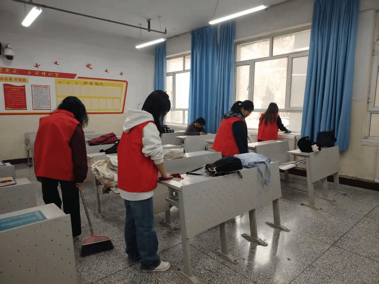 3月5日,学院率先启动“‘锋’行校园,净美同行”爱国卫生运动。志愿者们对教学楼教室进行全面清洁,擦拭讲台、清扫地面、整理桌椅,用双手为师生营造整洁舒适的学习环境。同学们在劳动中增进协作、强化责任意识,让志愿服务精神在点滴行动中落地生根。